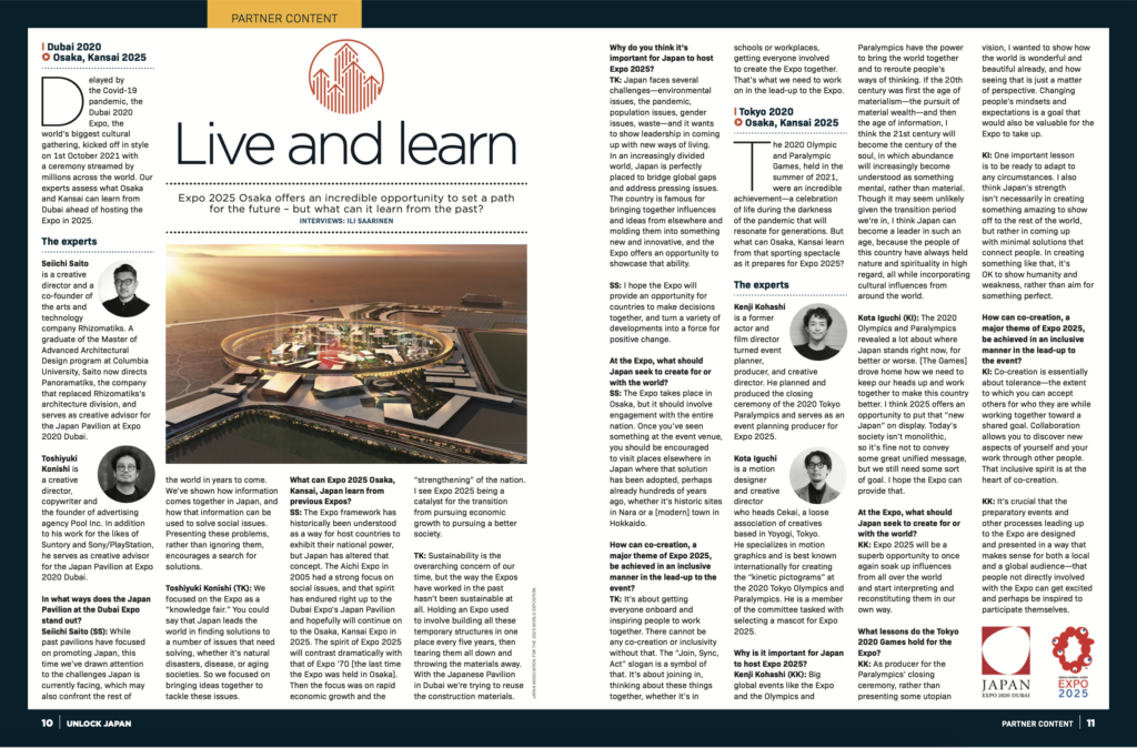 特集は『2025年日本国際博覧会』、大阪府知事の吉村洋文氏や催事企画プロデューサーの小橋賢児氏のインタビュー、広域大阪ガイドなどを収録。ドバイ万博での配布を実施